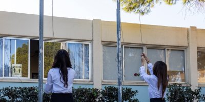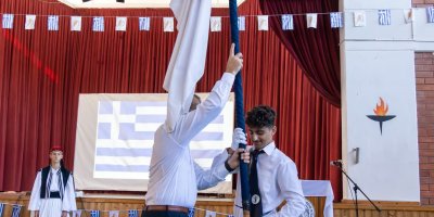 - Έπαρση των σημαιών με τη λαβαροφόρο και τους σημαιοφόρους του Σχολείου μας πριν τον Εορτασμό της Σημαίας και της Εθνικής Επετείου της 28ης Οκτωβρίου 1940.
