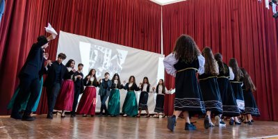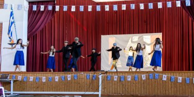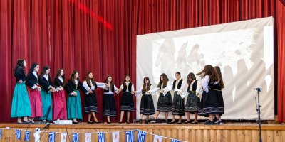 Στη συνέχεια, μέσα από ένα πλούσιο καλλιτεχνικό αφιέρωμα διανθισμένο με μουσική, σύγχρονους και παραδοσιακούς χορούς, τραγούδια και δρωμενα, οι μαθητές μας με αισθήματα τιμής και υπερηφάνειας τίμησαν το ηρωικό έπος του 1940, μια από τις πιο ένδοξες σελίδες στην ιστορία του ελληνισμού.