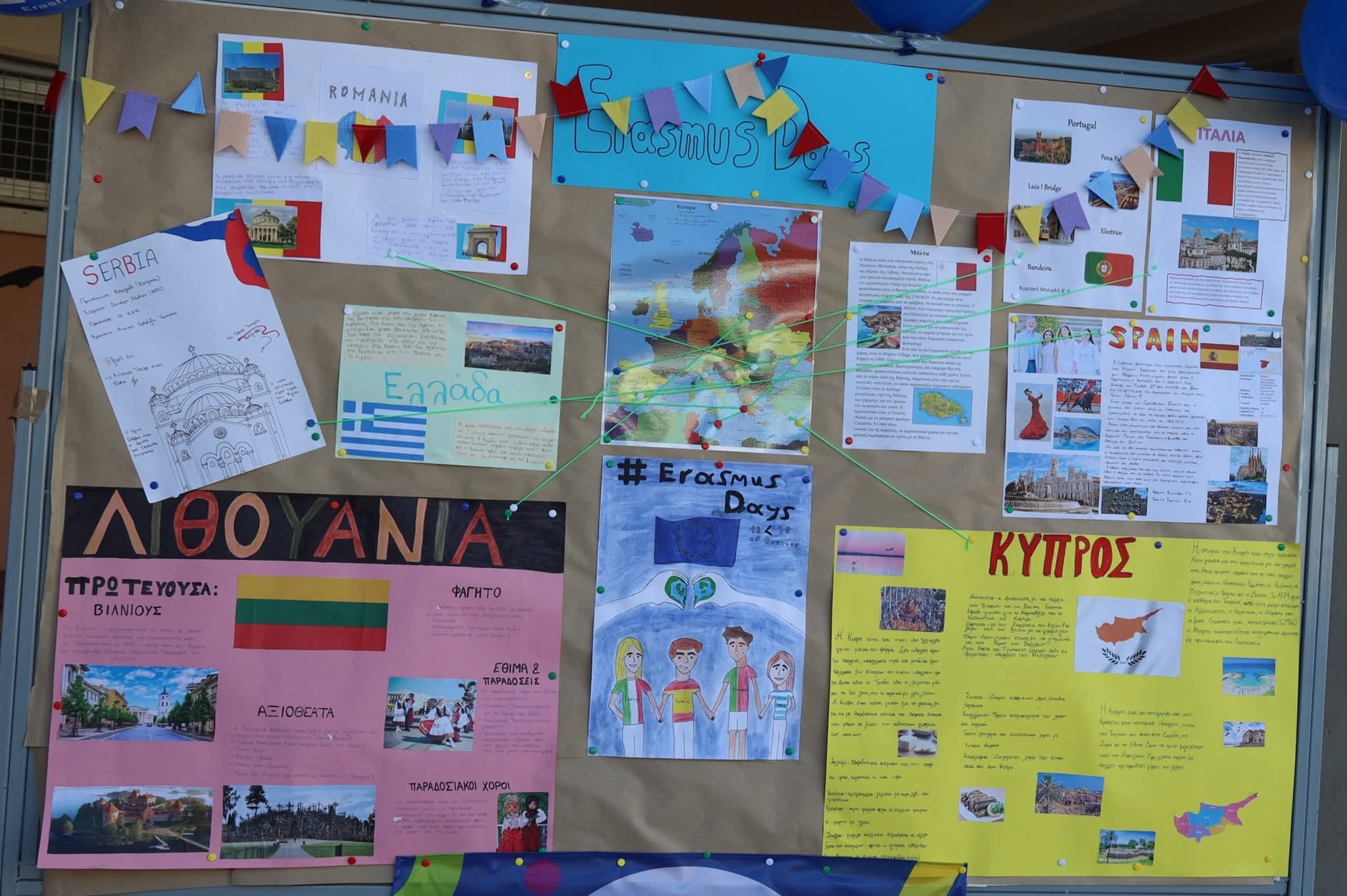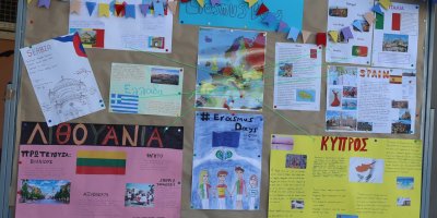 - Πινακίδα «Γνωρίζοντας τις χώρες συνεργασίας» με αφίσες μαθητών μας με πληροφορίες για τις εννέα χώρες-εταίρους του Σχολείου μας.