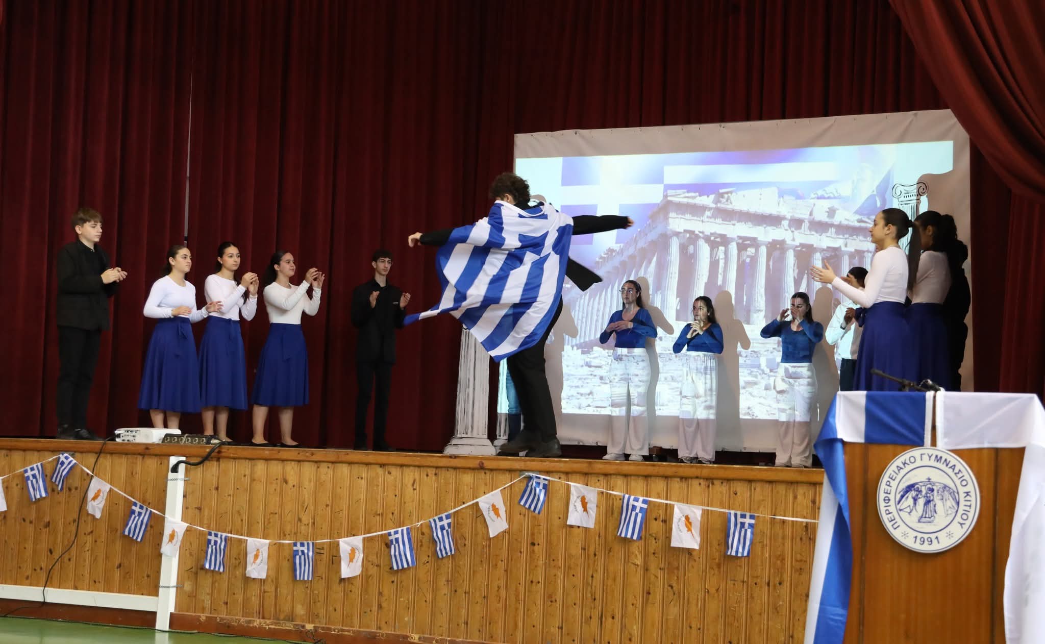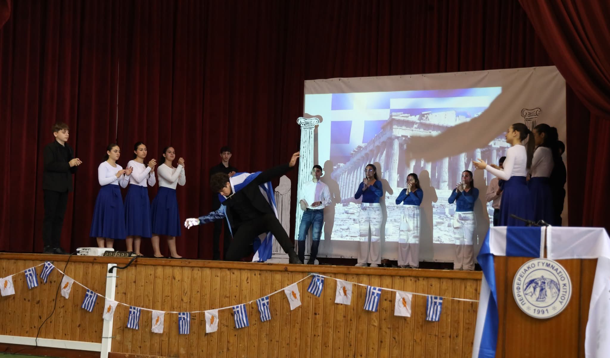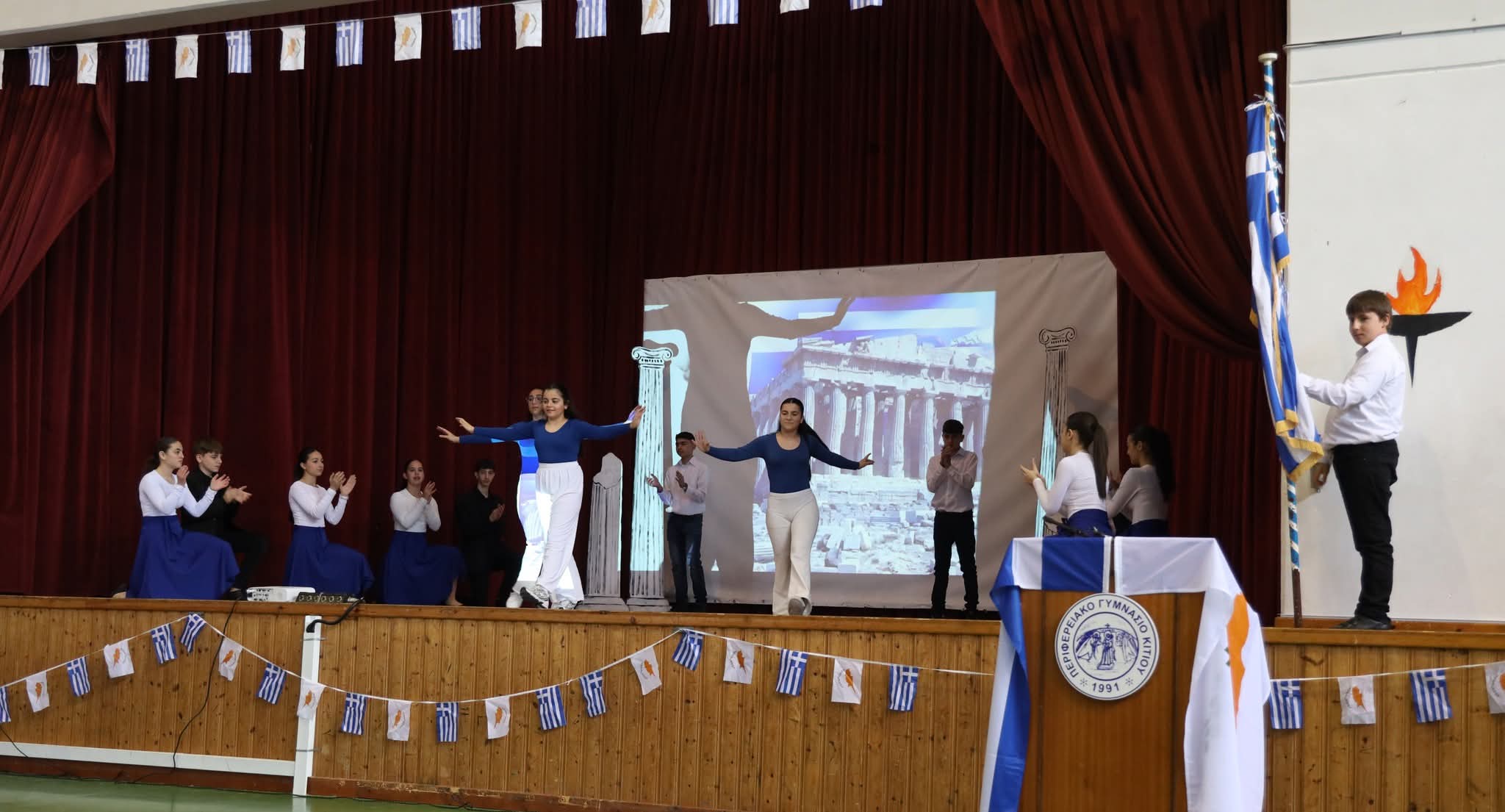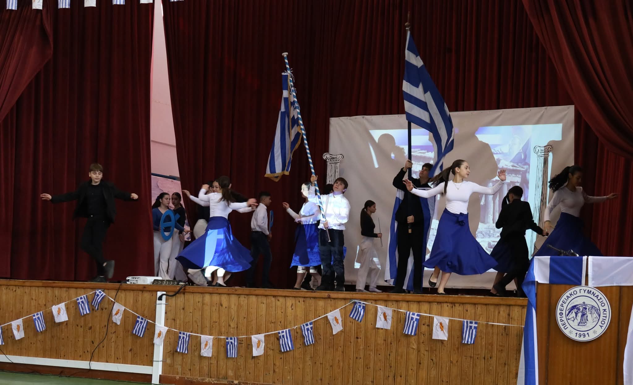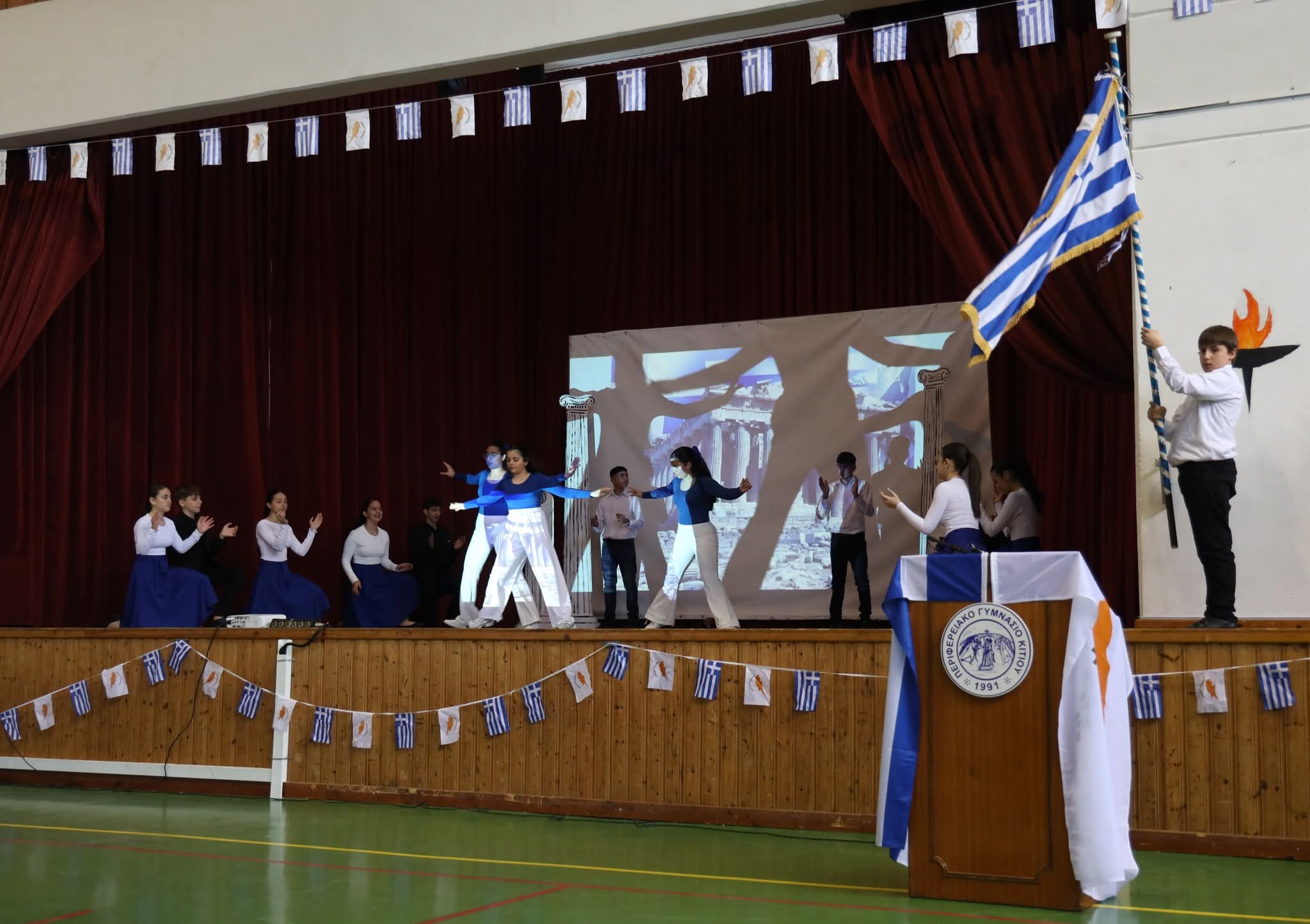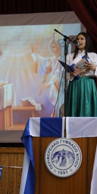 Στη συνέχεια οι μαθήτριες και οι μαθητές μας παρουσίασαν ένα πλούσιο πρόγραμμα τιμώντας την ιστορική αυτή ημέρα με σεβασμό και υπερηφάνεια.