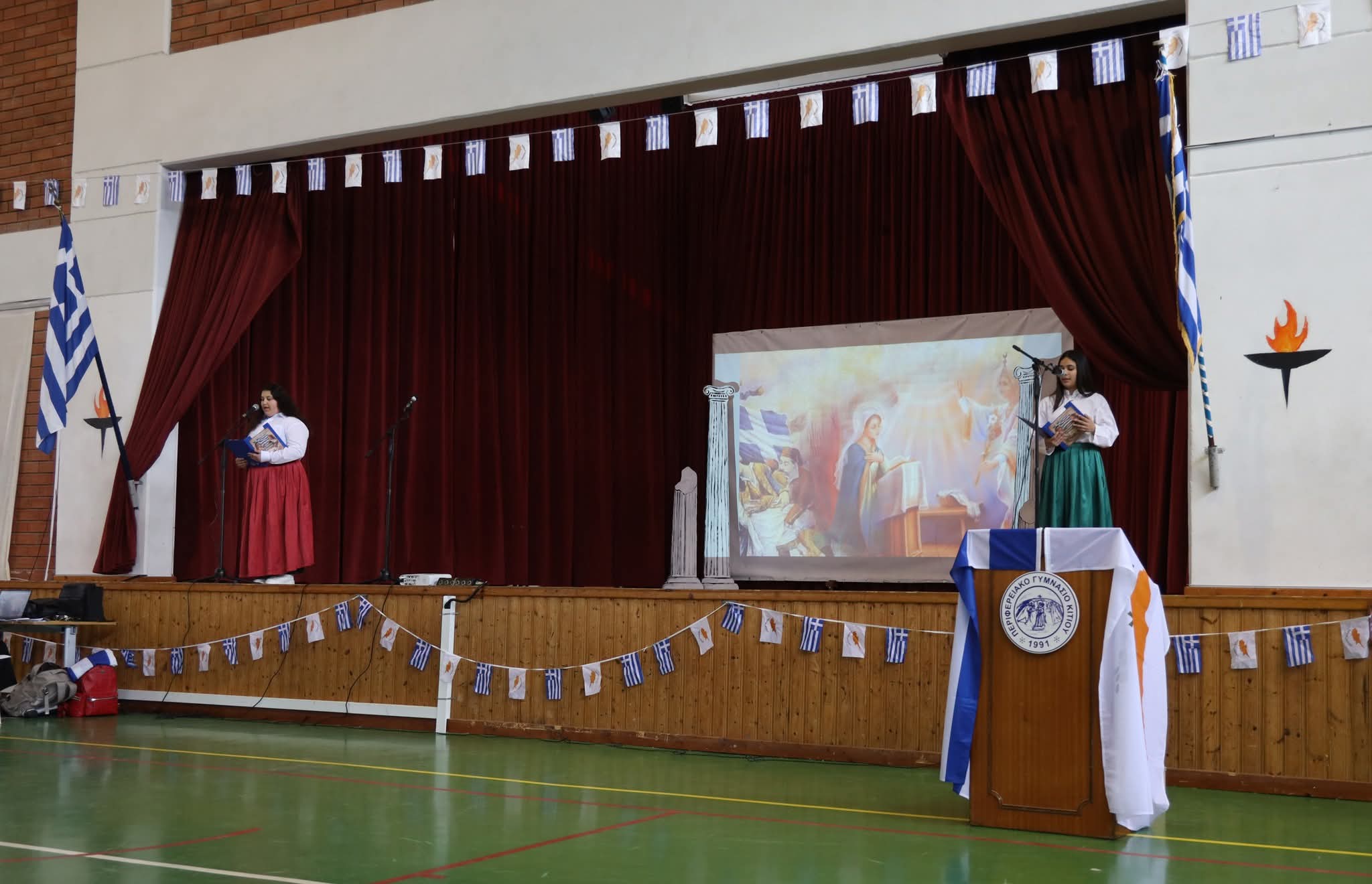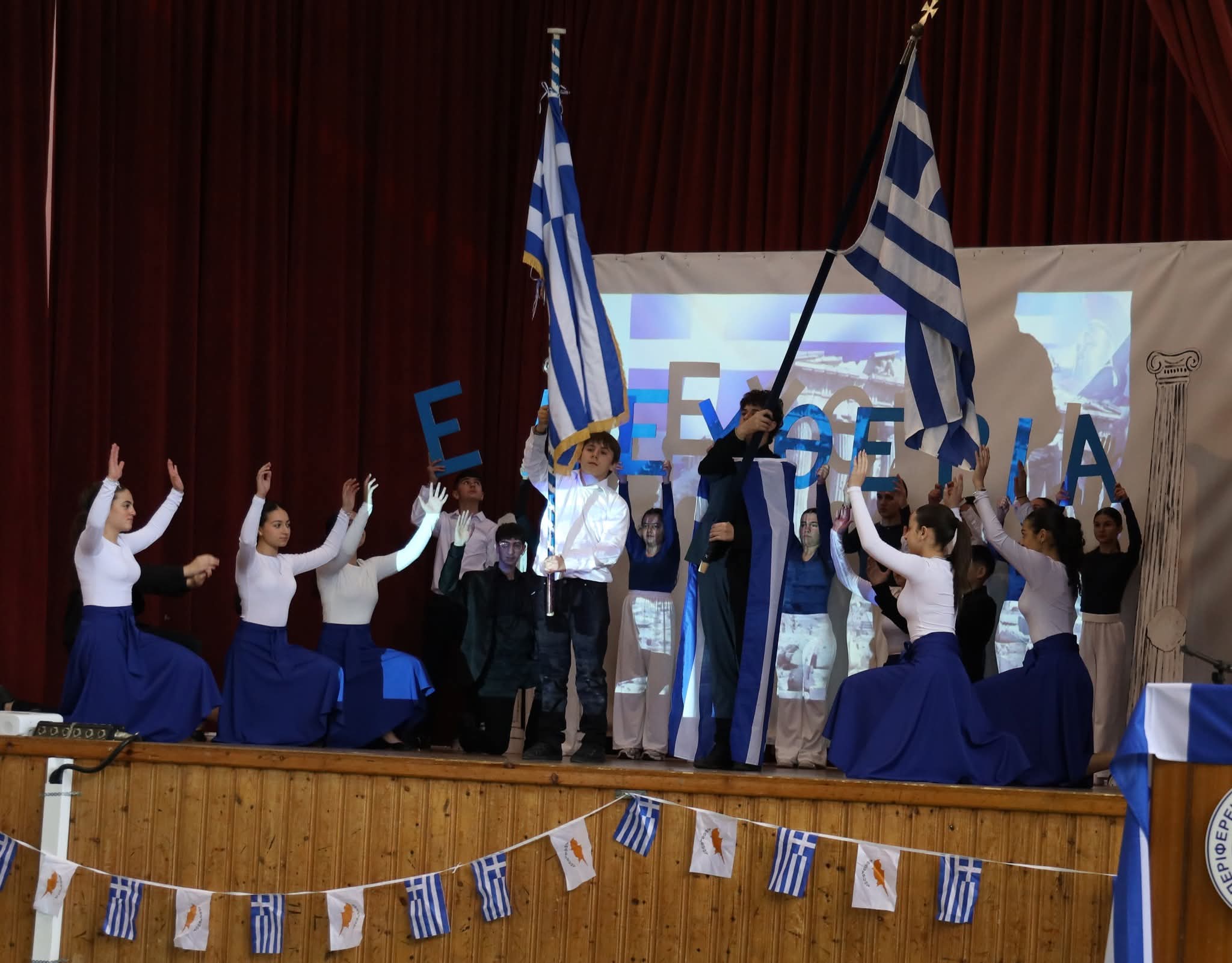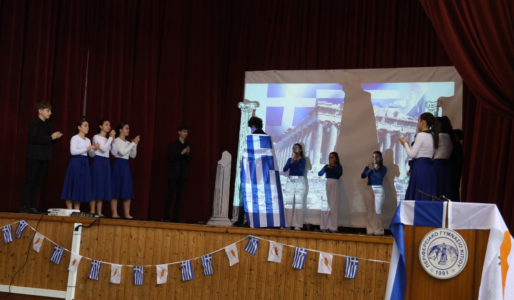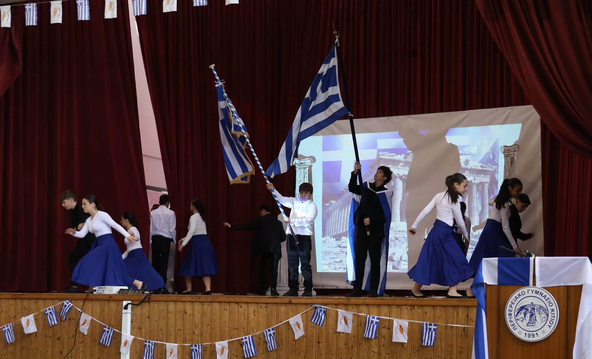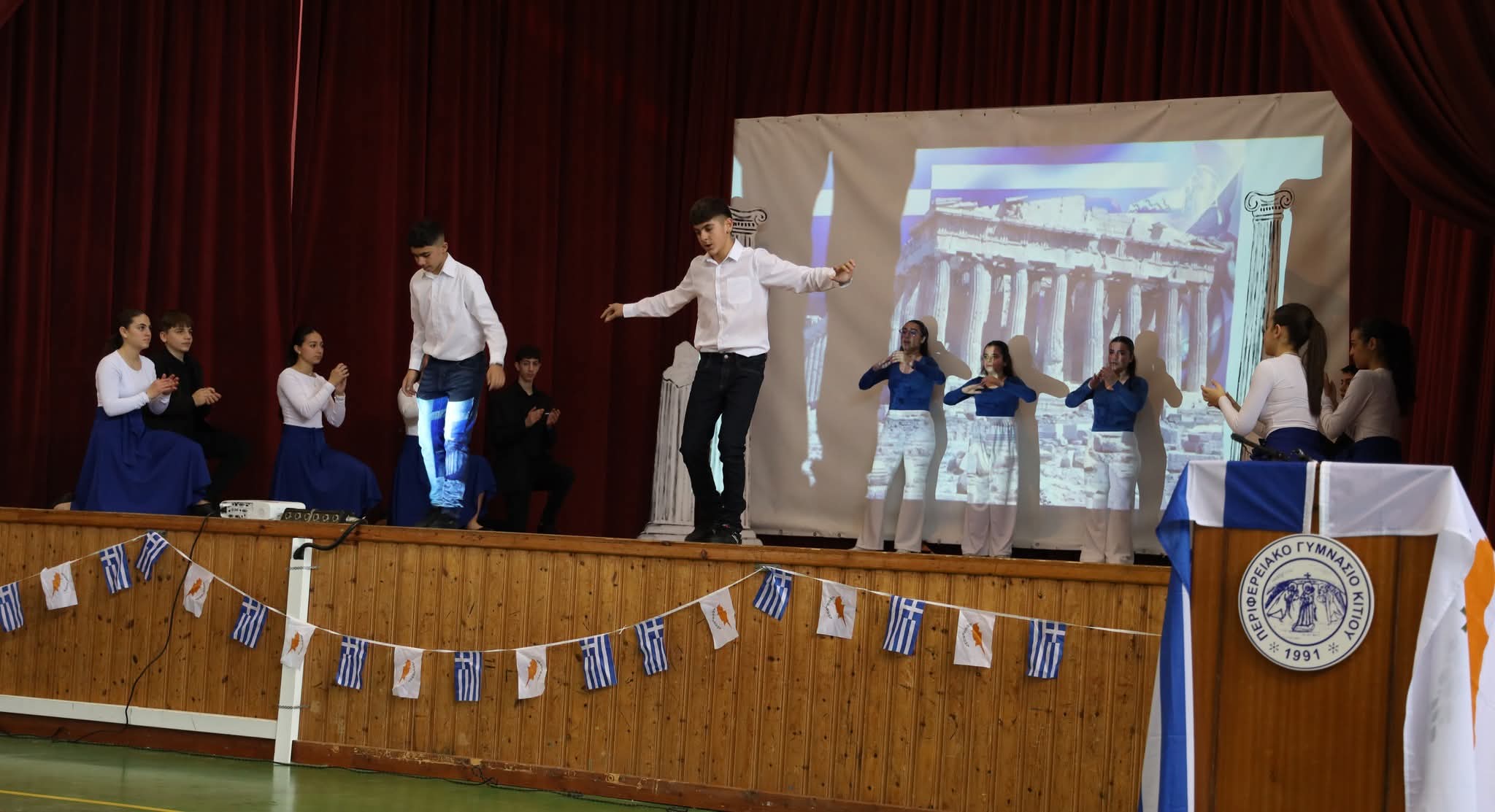 Στη συνέχεια οι μαθήτριες και οι μαθητές μας παρουσίασαν ένα πλούσιο πρόγραμμα τιμώντας την ιστορική αυτή ημέρα με σεβασμό και υπερηφάνεια.