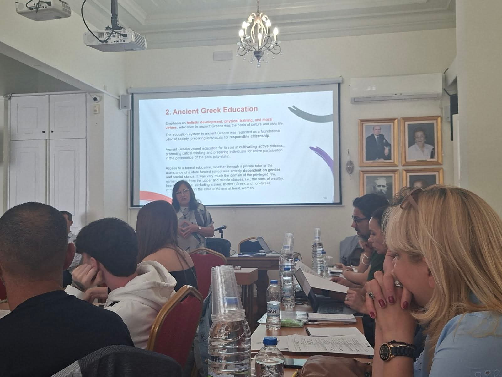 Δεύτερη μέρα εργασιών του Προγράμματος Erasmus στη Ρόδο και οι συμμετέχοντες γνώρισαν σε βάθος το ελληνικό εκπαιδευτικό σύστημα και συμμετείχαν σε εργαστήρια με θέμα την αρχαία ελληνική παιδεία. Ακολούθησαν θεματικές ενότητες με αντικείμενο τα ευρωπαϊκά πλαίσια δεξιοτήτων. Μετά το μεσημεριανό γεύμα, ακολούθησε ξενάγηση στο κάστρο και στο μουσείο στην Παλιά Πόλη της Ρόδου, μια ξενάγηση που πρόσφερε στους συμμετέχοντες τη μοναδική ευκαιρία να ανακαλύψουν την πλούσια ιστορία και την πολιτιστική κληρονομιά του νησιού.