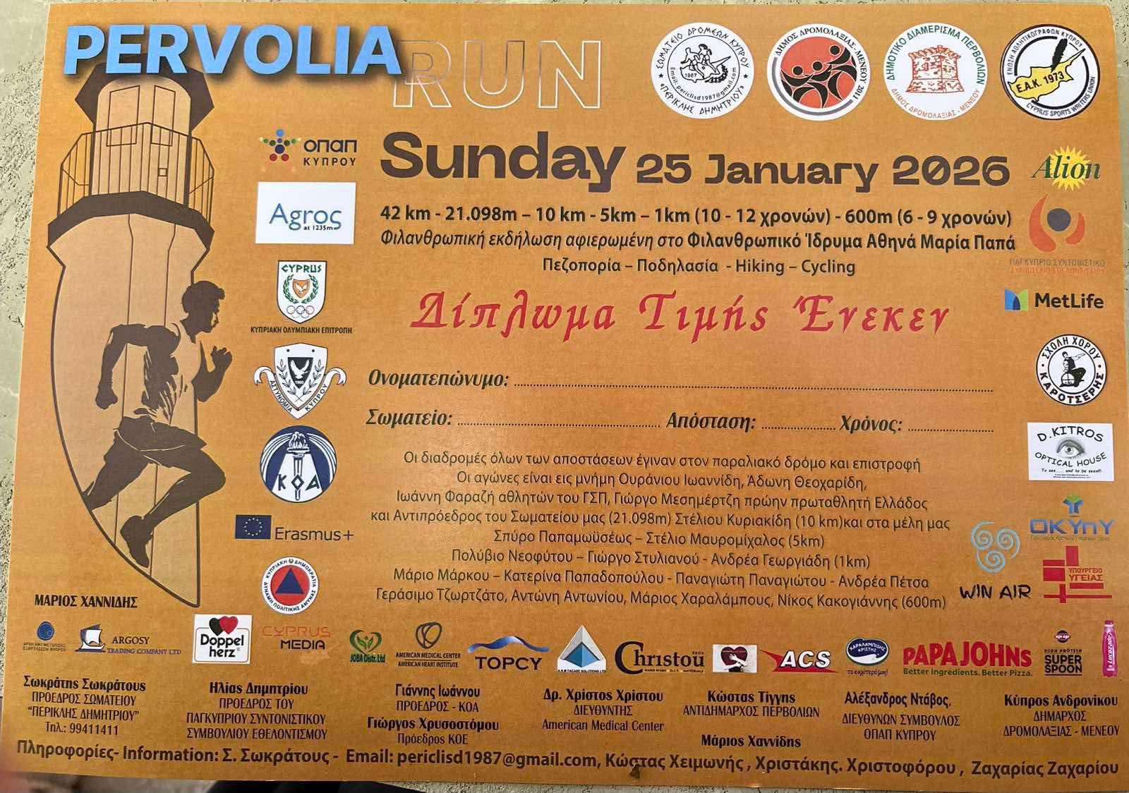 Μαθητές και εκπαιδευτικοί του Σχολείου μας έλαβαν μέρος ως εθελοντές στον Pervolia Run 2026 και είχαν την ευκαιρία να συμβάλουν ενεργά στην ομαλή διεξαγωγή του αγώνα και να ζήσουν από κοντά το πνεύμα του αθλητισμού και της κοινωνικής ευθύνης.