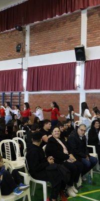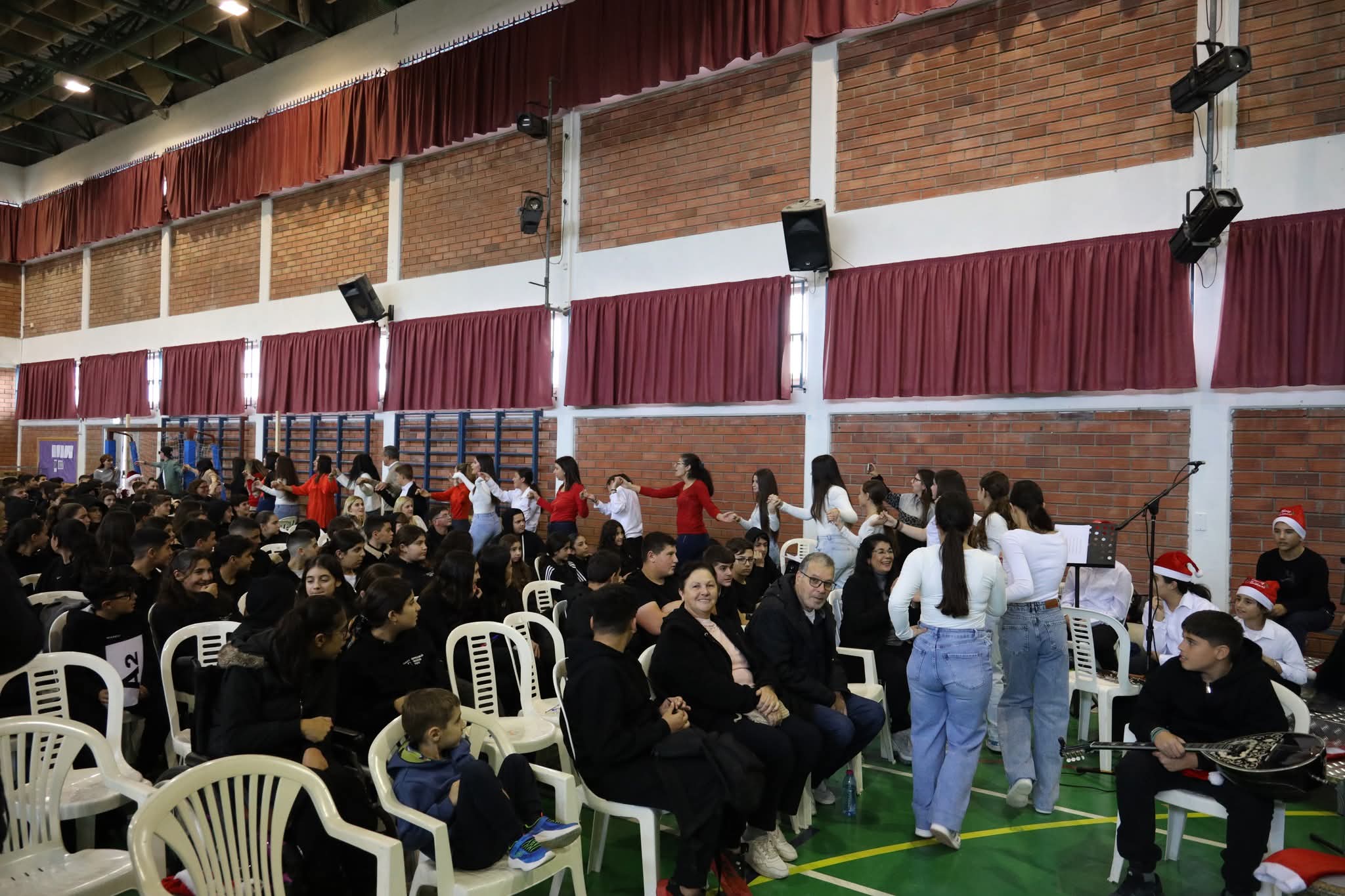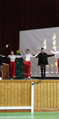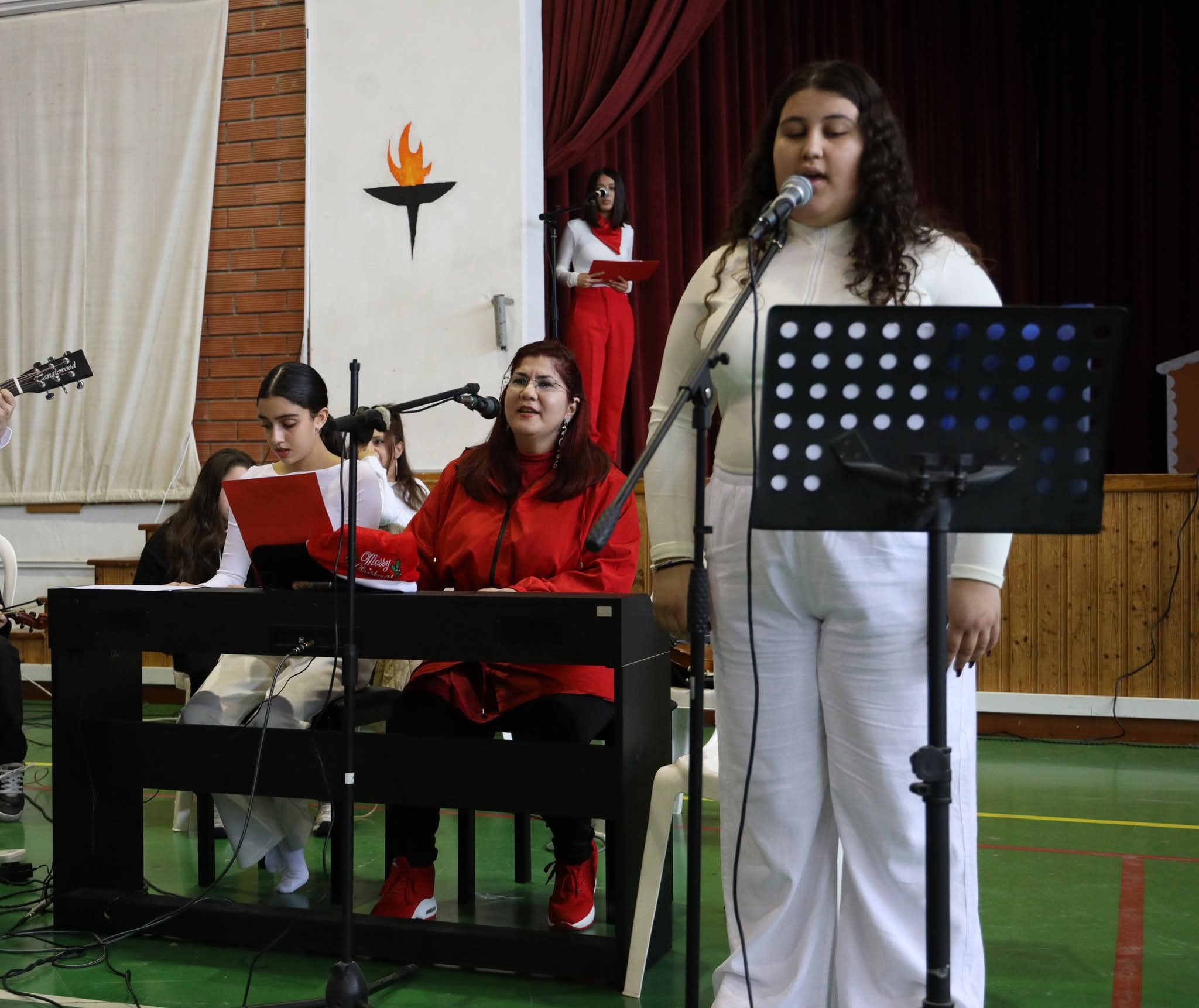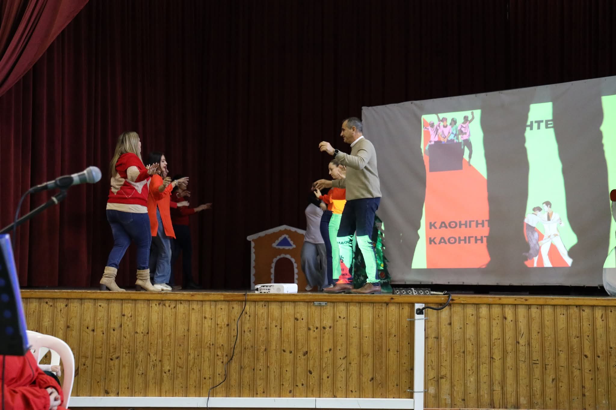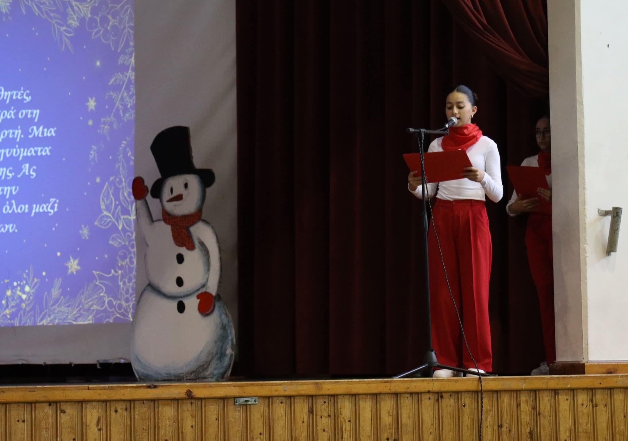 Μετά τον καθιερωμένο εκκλησιασμό, η Αίθουσα Πολλαπλής Χρήσης γέμισε με τραγούδια, χαμόγελα και χορό, και οι καρδιές μας με το αληθινό μήνυμα των Χριστουγέννων: Χριστός, αγάπη, προσφορά και ελπίδα.