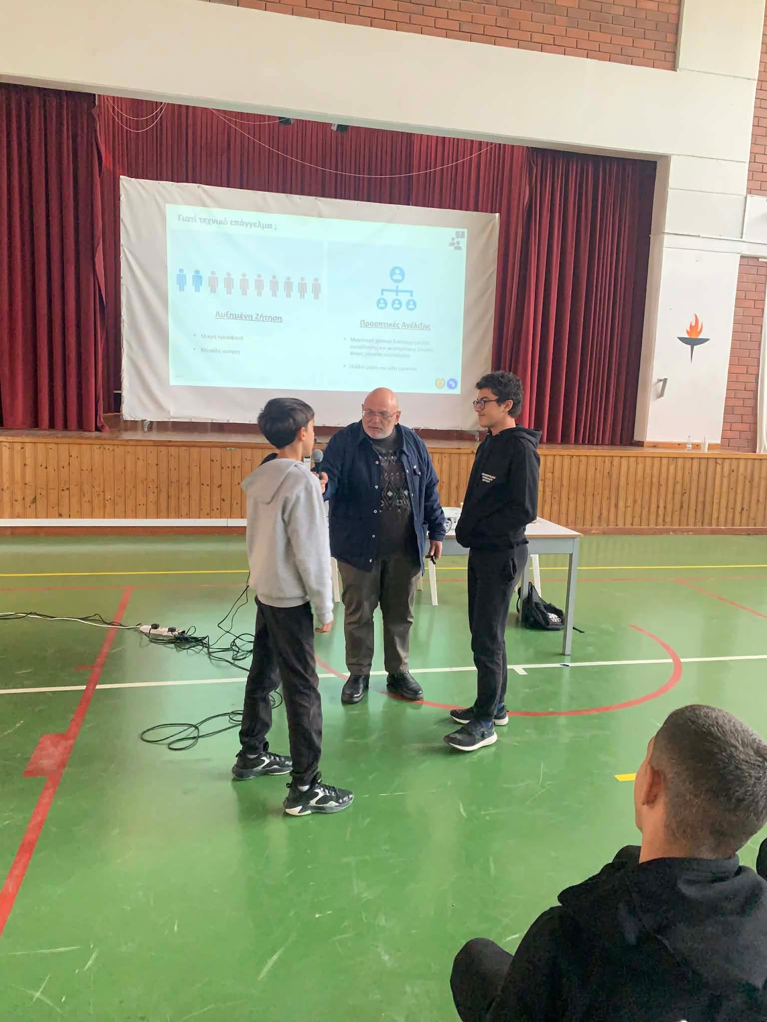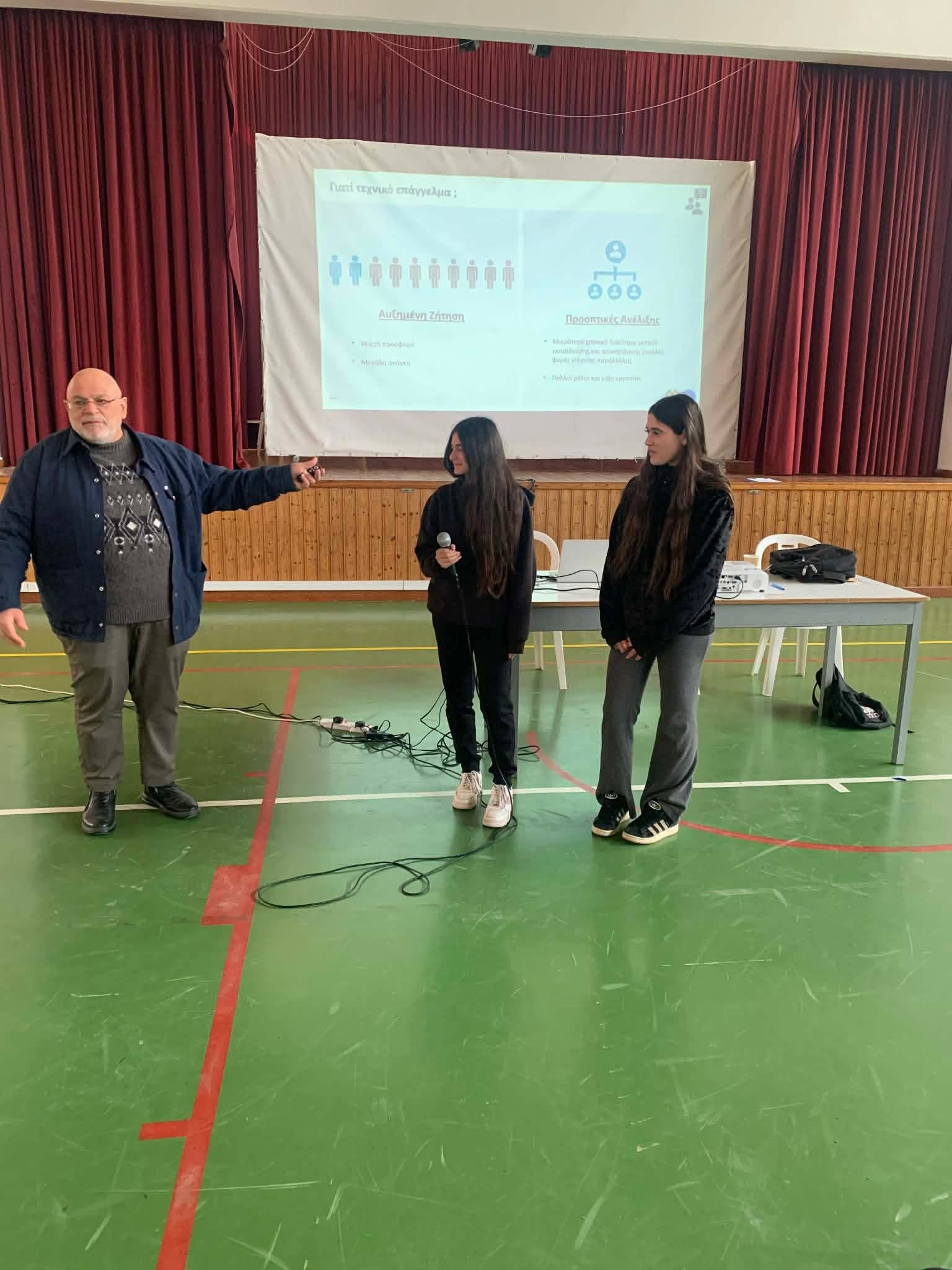 Πραγματοποιήθηκε στις 26 Ιανουαρίου 2026 μια ακόμα δράση στο πλαίσιο των δράσεων του Διημέρου Εργασίας. Οι μαθητές και οι μαθήτριές μας της Γ' τάξης παρακολούθησαν ενημερωτική διάλεξη με θέμα: «Προώθηση Τεχνικών Επαγγελμάτων - Διασύνδεση της Εκπαίδευσης με την Αγορά Εργασίας».