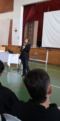 Η κ. Κατελάρη κατάφερε να κρατήσει αμείωτο το ενδιαφέρον των μαθητών μας, προκαλώντας έντονη συγκίνηση. Την ευχαριστούμε θερμά για όσα μοιράστηκε μαζί μας και κυρίως για το σπουδαίο μήνυμα ζωής που πέτυχε να περάσει στους μαθητές μας: