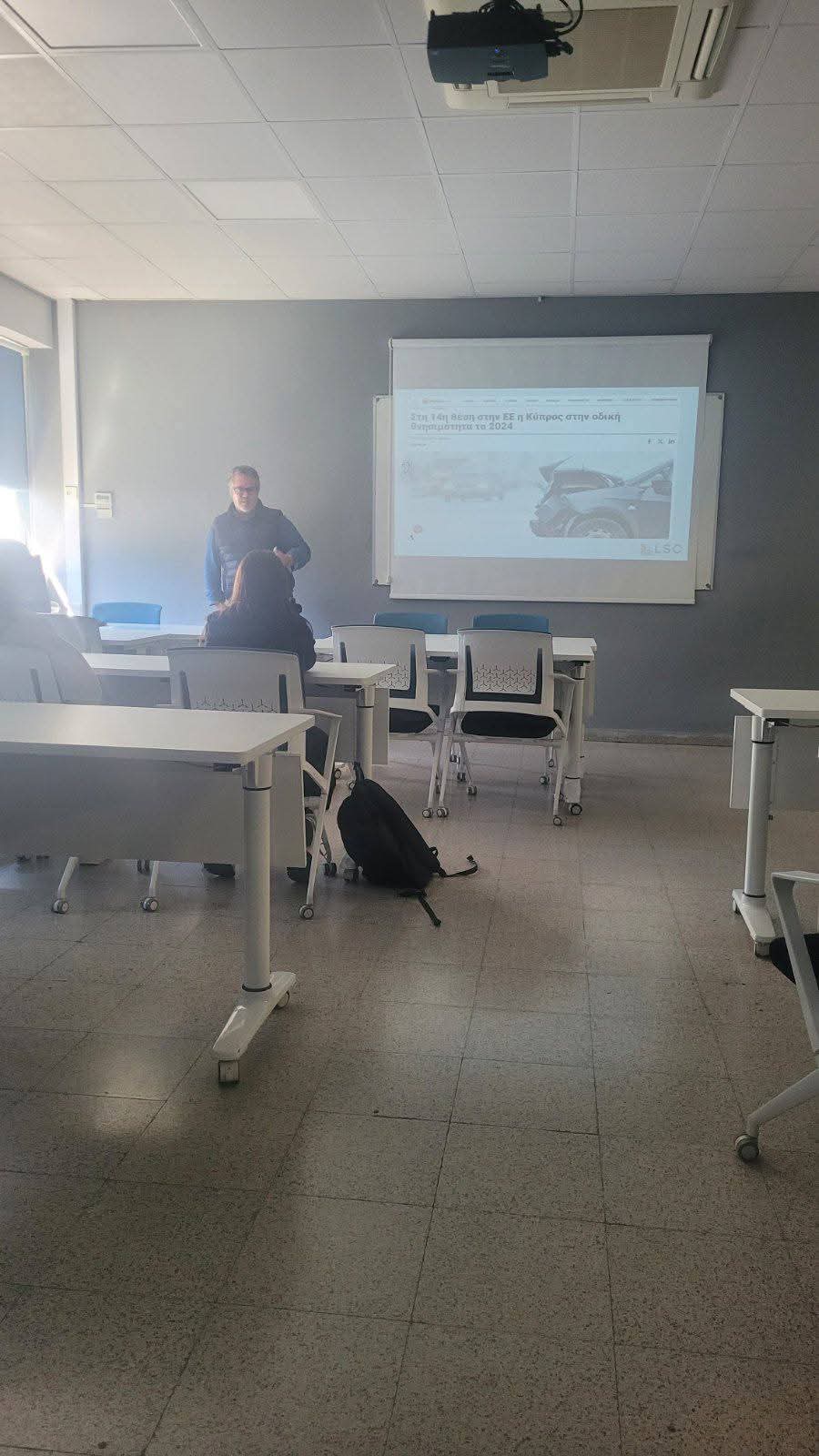 Στο πλαίσιο του μαθήματος της Αγωγής Υγείας και ειδικότερα της θεματικής ενότητας της Κυκλοφοριακής Αγωγής, το Γραφείο Επιθεώρησης Αγωγής Υγείας σε συνεργασία με το Πανεπιστήμιο Frederick Λευκωσίας και το Τμήμα Τροχαίας Αρχηγείου πραγματοποιούν βιωματικά εργαστήρια.