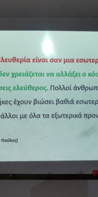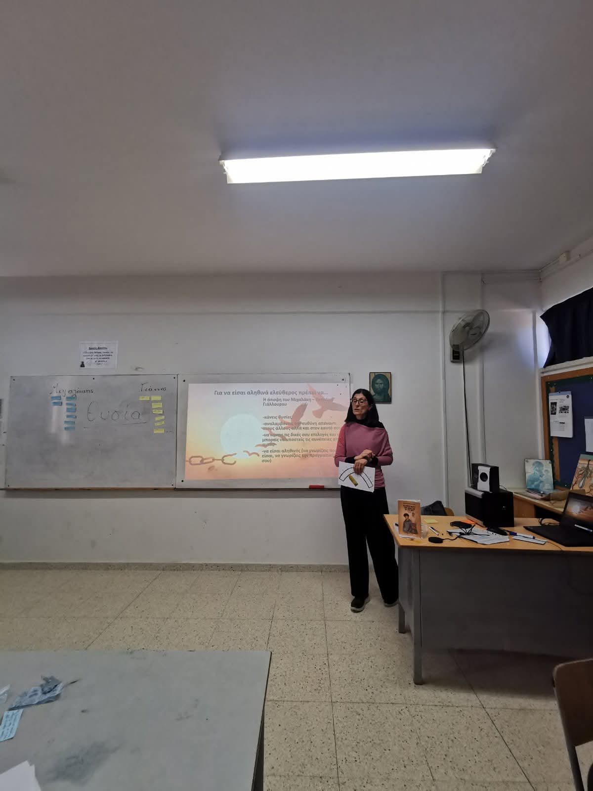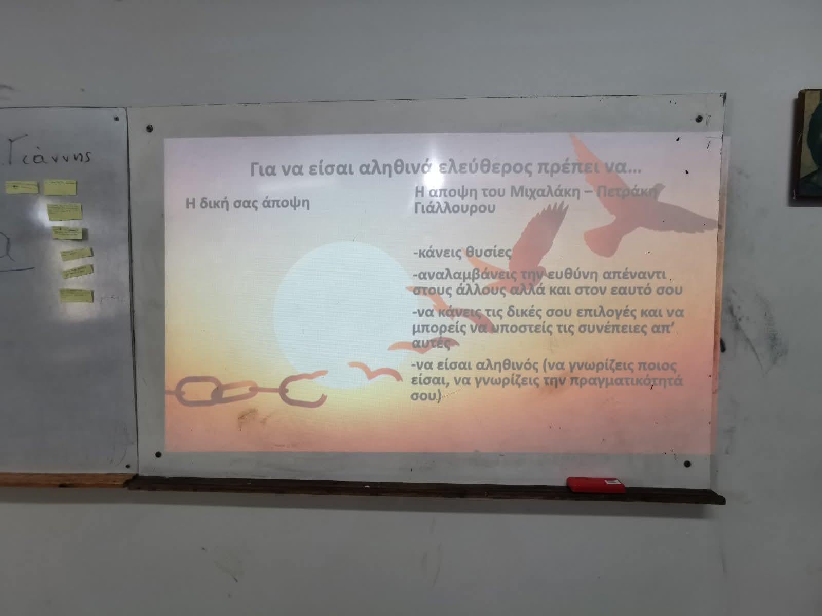 Πρόκειται για ένα μυθιστόρημα εμπνευσμένο από τη ζωή και τη θυσία του ήρωα Πετράκη Γιάλλουρου. Μέσα από ένα βιωματικό εργαστήρι τα παιδιά ήρθαν σε επαφή με τις αξίες της φιλοπατρίας και της ελευθερίας και ένιωσαν τι σημαίνει να είναι κανείς πραγματικά λεύτερος. Στο εργαστήρι συμμετείχαν οι μαθητές/τριες του τμήματος Γ7 στο πλαίσιο του μαθήματος της Λογοτεχνίας. Ταυτόχρονα, την παρουσίαση παρακολούθησαν μέσω διαδικτυακής σύνδεσης και μαθητές του Ε' Γυμνασίου Αλεξανδρούπολης "Ελένη Φιλιππίδη" στο πλαίσιο των δράσεων μεταξύ των αδελφοποιημένων μας σχολείων. Μια όμορφη δράση που μόνο συγκίνηση πρόσφερε σε μαθητές και καθηγητές.