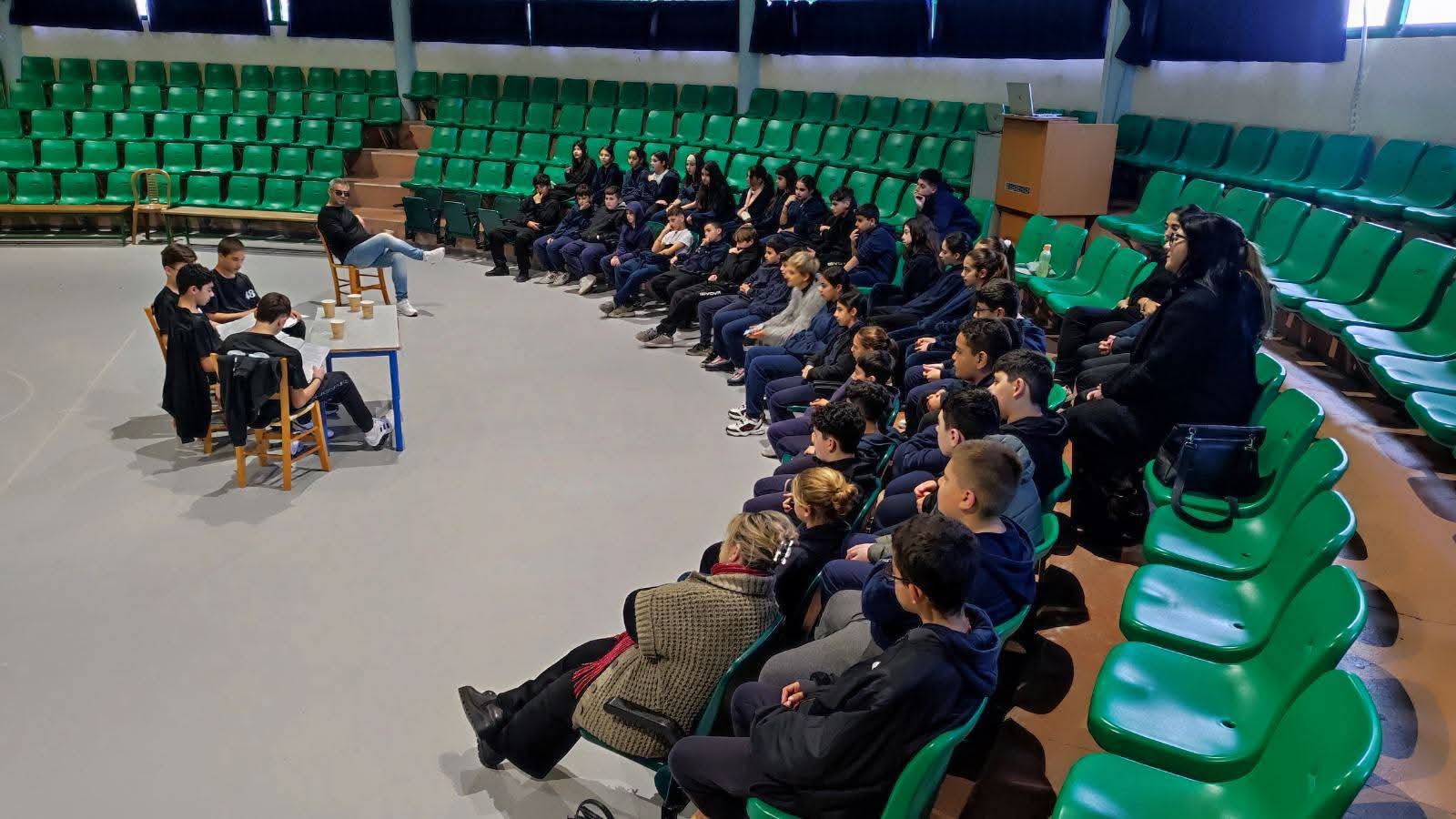 Στο πλαίσιο των δράσεων του Προγράμματος Ομαλής Μετάβασης από το Δημοτικό στο Γυμνάσιο, ομάδα μαθητών μας, με τη συνοδεία καθηγητών Μαθηματικών του Σχολείου μας, επισκέφθηκαν το Δημοτικό Σχολείο Κιτίου και παρουσίασαν θεατρικό δρώμενο με θέμα τα μαθηματικά. Στη συνέχεια οι συνάδελφοι έκαναν μάθημα στους μαθητές των δύο τμημάτων της Στ' τάξης.