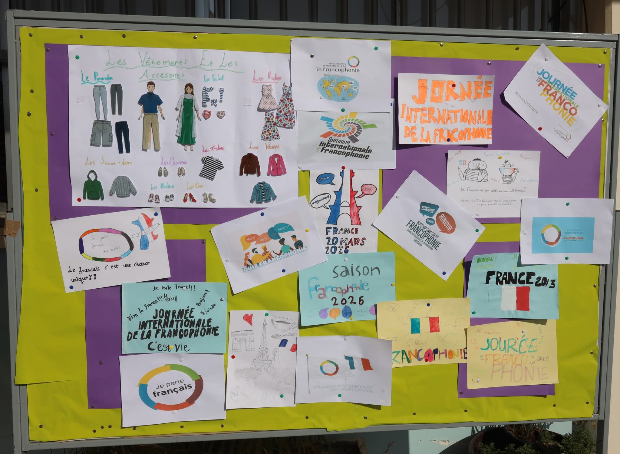 Οι καθηγήτριες της γαλλικής γλώσσας του Σχολείου μας ανάρτησαν σε πινακίδες στην κεντρική αυλή δημιουργικές εργασίες μαθητών μας τιμώντας με αυτό τον τρόπο τη γαλλική γλώσσα και τον γαλλικό πολιτισμό!