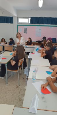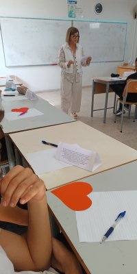 Η κ. Λουκά πραγματοποίησε ένα βιωματικό εργαστήρι με μαθητές και μαθήτριες της Β’ τάξης, με αφορμή το τελευταίο της μυθιστόρημα «Δεκαέξι πρόσωπα ζητούν συγγραφέα». Το εργαστήρι παρακολούθησε και η ομάδα των Φιλολόγων του Σχολείου μας, που το βρήκε ιδιαίτερα ενδιαφέρον και δημιουργικό.