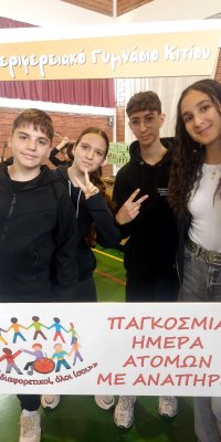 Με αφορμή την Παγκόσμια Ημέρα Ατόμων με Αναπηρία, διοργανώθηκε στις 05/12/2025 στο Σχολείο μας μια ξεχωριστή δράση, με μαθητές και καθηγητές να στέλνουν μηνύματα αποδοχής, σεβασμού και ενσωμάτωσης. Ένας μαθητής από άλλο σχολείο μοιράστηκε μια δύσκολη προσωπική εμπειρία, προσφέροντάς μας μαθήματα ζωής, ενώ δύο υπέροχες ψυχούλες με οπτική αναπηρία μας συγκίνησαν βαθιά με τα τραγούδια τους. Η δράση έκλεισε με όλους μαζί, ενωμένους σαν μία φωνή, να τραγουδάμε και να μοιραζόμαστε μια μοναδική, συγκινητική στιγμή.